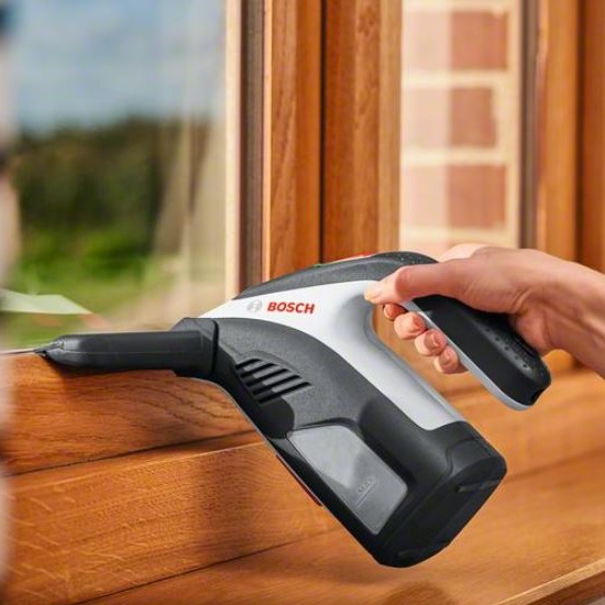 Bosch Automotive rubber coating provides a smooth glide for fast results. Compact design for easier handling, even in hard-to-reach places. Complete a wider range of applications with even more optional accessories. Ideal for cleaning windows, mirrors, tiles, showers, and vacuuming up spillages. Cleans up to 35 windows on one charge.
