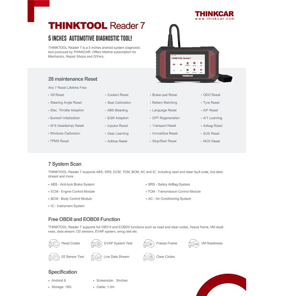 THINKTOOL Reader 7 is compatible with vehicles after 1996 with OBD II port and supports CAN, ISO9141, KWP2000, J1850 PWM, J1850 VPW. Covers 98% car makes worldwide including American cars, Asia cars, Chinese cars, European cars.