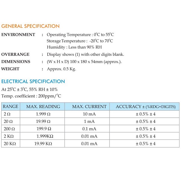 - Resolution 1 m ohm on 2 ohm range