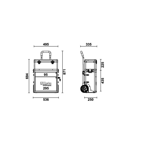 • 2 detachable modules: 1 upper tool box, 1 module with 2 drawers, 95 mm and 295 mm high respectively.