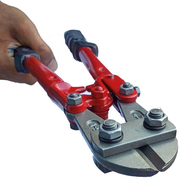 A bolt cutter, sometimes called bolt cropper, is a tool used for cutting chains, padlocks, bolts and wire mesh. It typically has long handles and short blades, with compound hinges to maximize leverage and cutting force