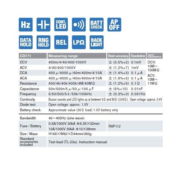 Type of Product: Digital Multimeters/Standard type